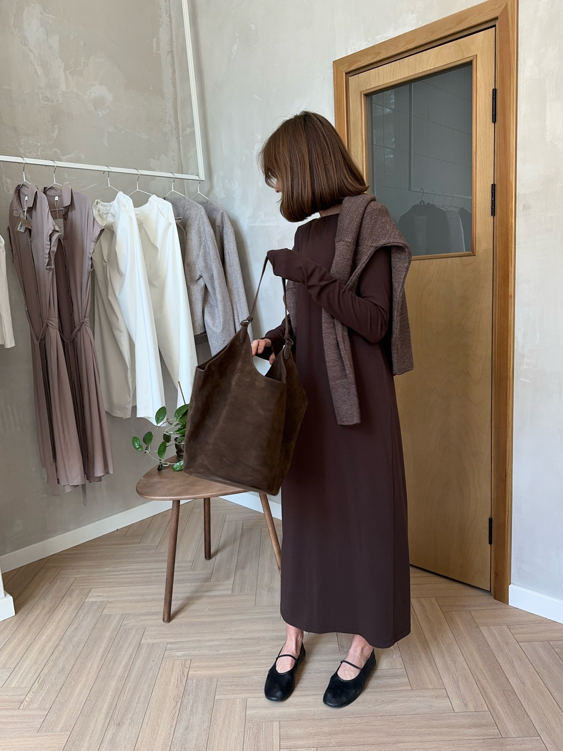 This chocolate-colored dress, crafted from soft and lightweight viscose, offers a sleek, flowing silhouette that moves effortlessly with the body. The fabric has a subtle sheen, adding a touch of sophistication to its rich brown tone. Featuring a flattering neckline and a tailored waist, it creates a polished look while ensuring comfort. Ideal for both day and evening wear, this versatile dress pairs elegance with ease, making it perfect for a variety of occasions.