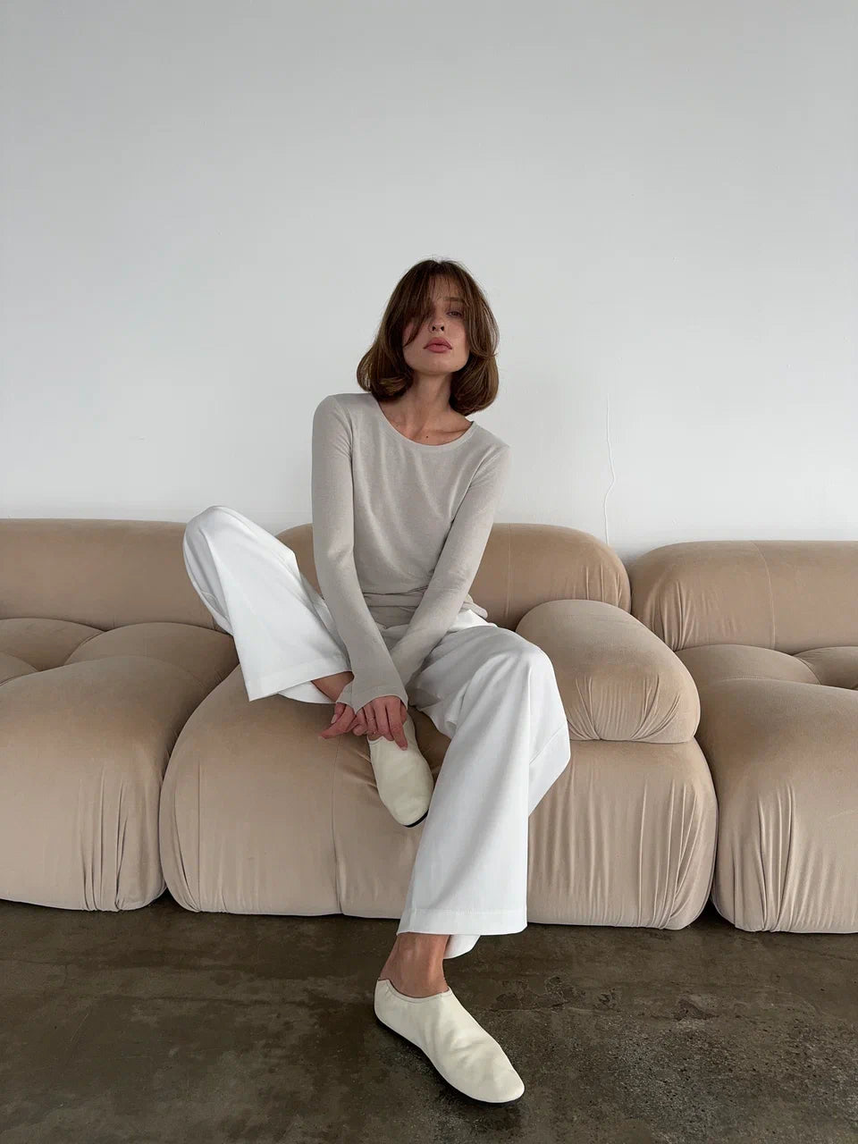 This viscose long-sleeve top combines comfort with style, offering a versatile piece that can transition from season to season. The fabric is silky smooth with a hint of stretch, providing a flattering, close-to-the-skin fit. Its classic crew neck and clean lines make it perfect for pairing with any outfit, from office wear to weekend attire