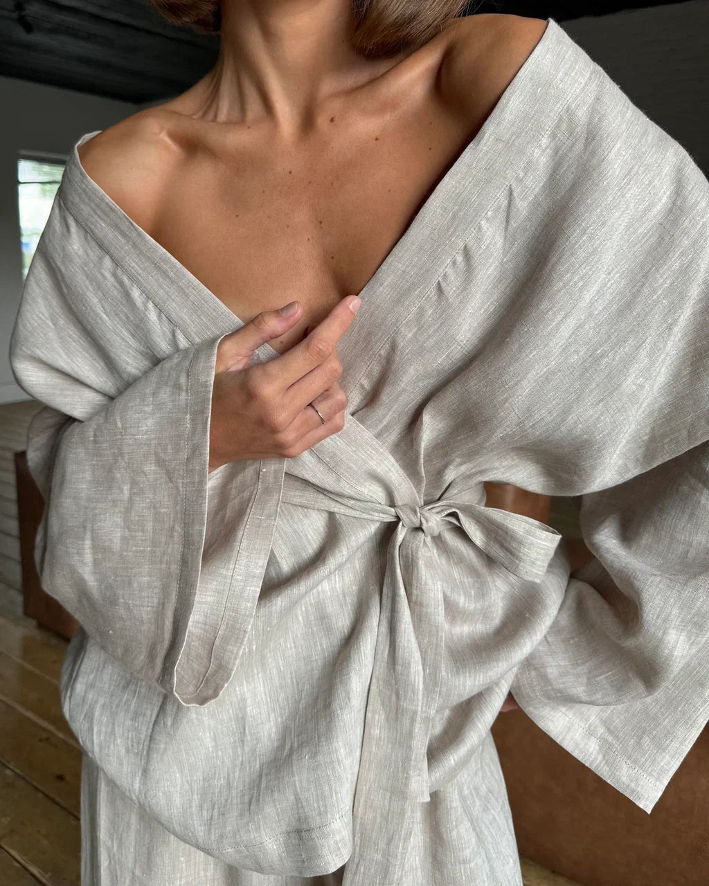 Redefine elegance with the Fluid Silhouette Suit, designed to celebrate movement and style. The linen fabric drapes like a dream, enhancing the blazer’s tailored fit and the trousers’ wide-leg flow. The minimalist aesthetic ensures versatility, allowing you to accessorize for any occasion. Whether worn together or separately, this suit is a statement of effortless grace.