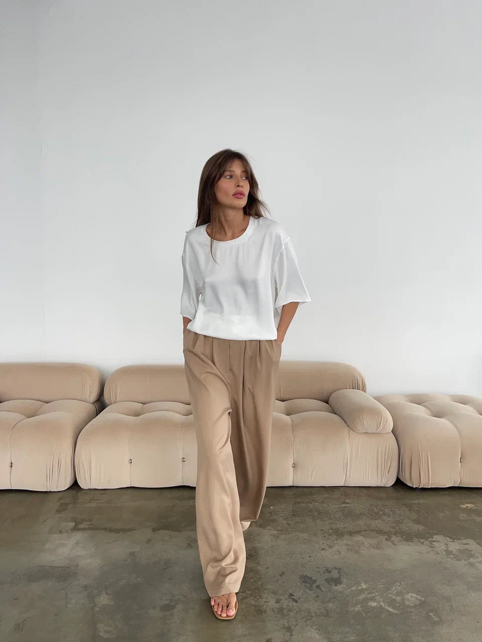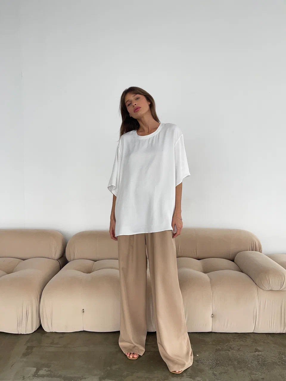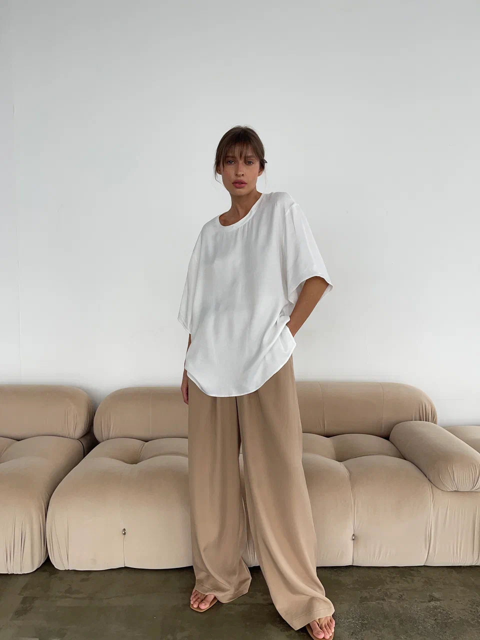 Experience ultimate comfort with this viscose T-shirt, designed with a loose, easygoing fit and a buttery-soft feel. The airy fabric drapes beautifully, giving you a relaxed yet elegant look that’s perfect for both lounging and outings. Whether you’re dressing it up or down, this versatile T-shirt is a must-have for effortless style.